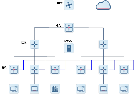 OpenFlow可以实现接入设备认证的集中管理。以图1-2为例,在接入交换设备上部署控制器完成对接入设备的认证控制,使得原先需要运行在接入设备上的认证功能(控制面)移交到控制器上完成。
